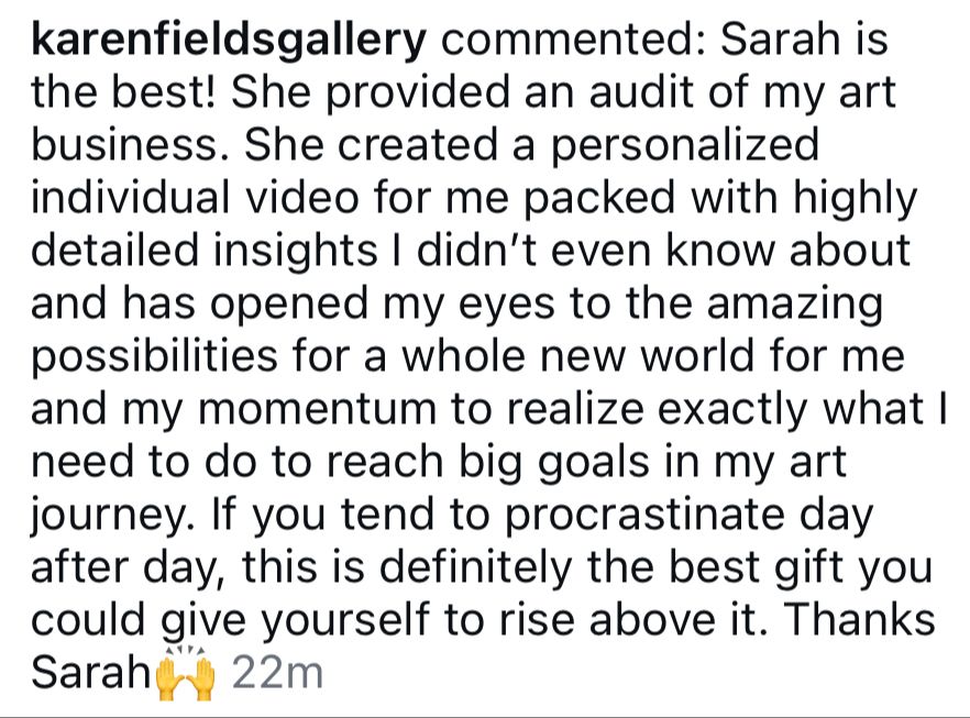 Get fresh eyes on your entire creative business and practice; what's working, what's not, and where your next $5K-$10K is hiding.