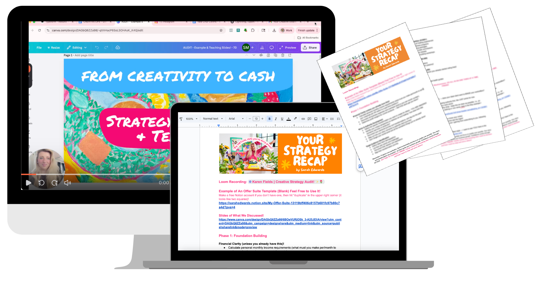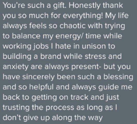 Once I receive your form, I will record and send you a video of me going over everything in detail. I will share my screen via Loom and also give additional feedback and coaching so we can ensure you have clear next steps to turn your creativity into cash.